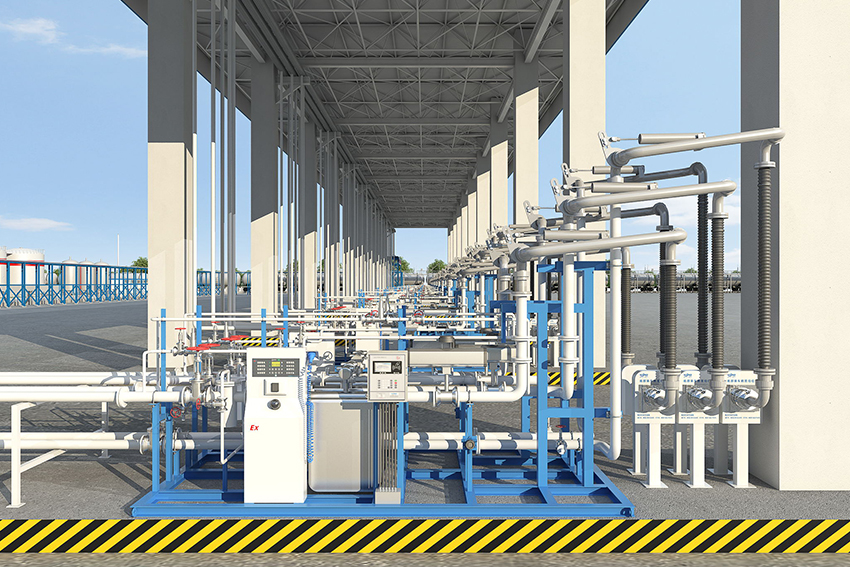 集成比高,安裝就位及維護(hù)方便裝車樓將控制儀、流量計(jì)、閥門、管道、附屬設(shè)備、鶴管、中間連接件及電纜、橋架等集成在一起,現(xiàn)場(chǎng)安裝方便,并且整體維護(hù)方便。